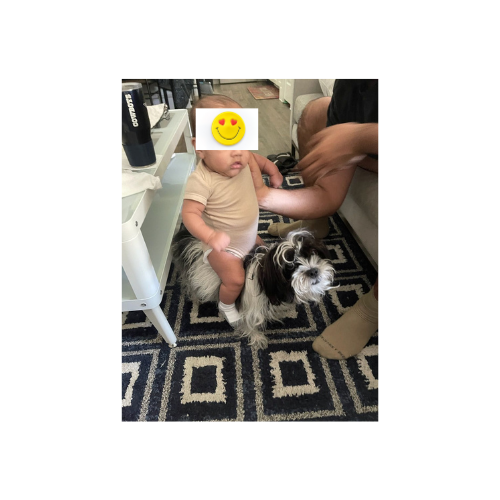 Now that my son is five months old, JoJo hasn’t exactly adjusted. If anything… she’s gotten worse in some areas. Every time we let her outside, she sneaks under the gate and runs away. We now have to keep a close eye on her—either by watching through the window or staying outside with her (which I think she secretly loves). She’s stopped chewing on furniture, but she’s moved on to stealing the baby’s shoes and toys. Her barking and crying have also ramped up.