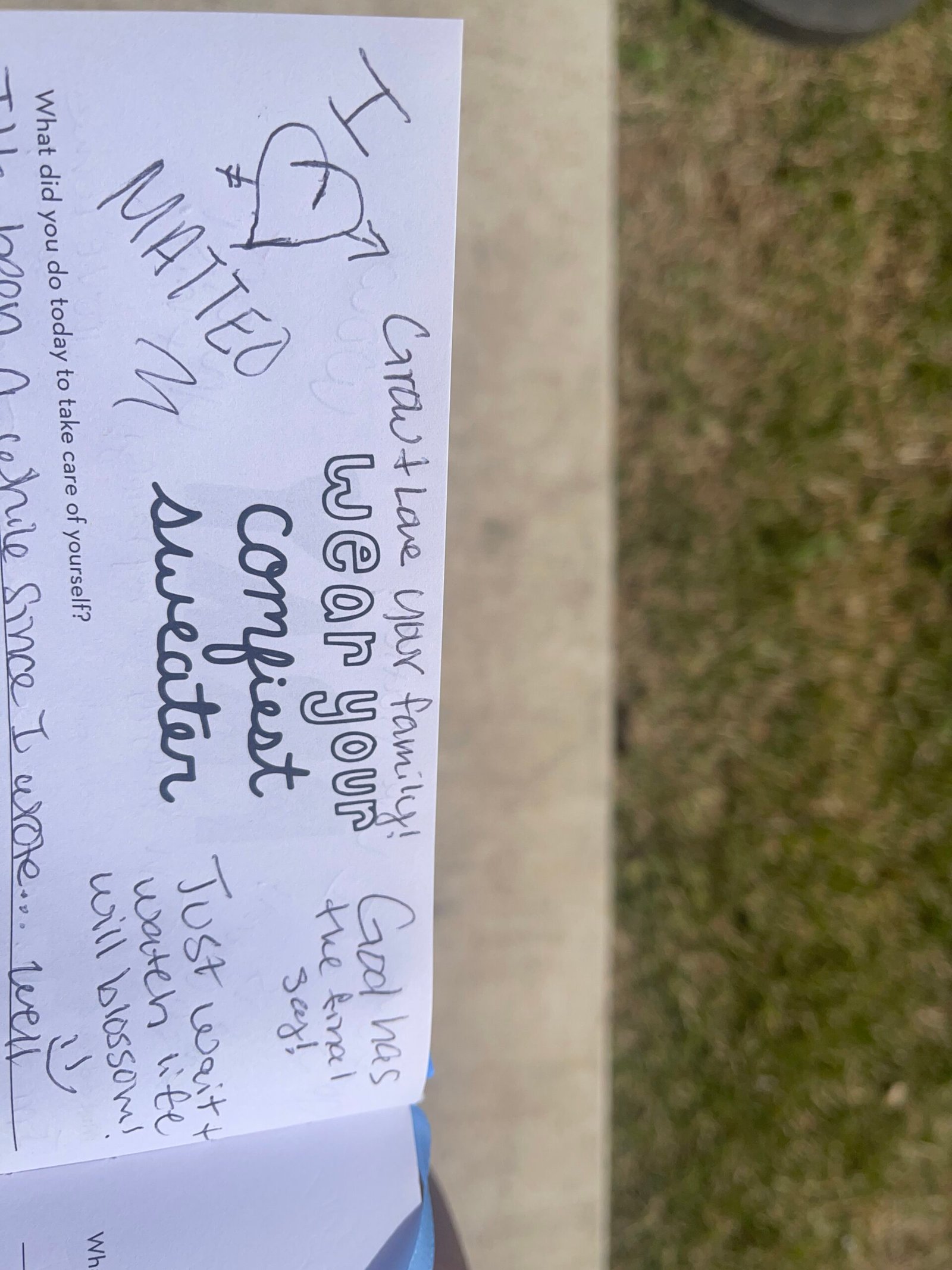 Whether it’s journaling or another form of self-care, find your thing and make space for it. Even a few minutes can change the way you feel and think.